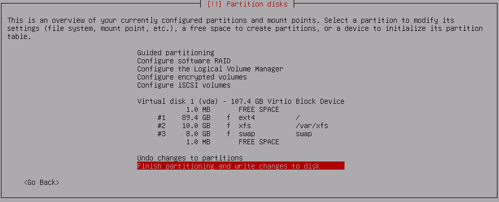 (If you don’t need to make any other partitions,swapfileis the modern approach instead of a swap partition.) - XFS for MongoDB